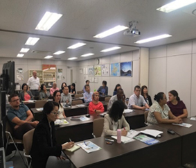 The workshop on Synergies in Mercury Waste Management was held by Ministry of Environment Japan, Minamata Convention Secretariat, and UNEP/IETC. The total of 28 mercury experts came to Nomura Kohsan Co., Ltd. Kansai Factory, which is an intermediate treatment facility for fluorescent lamps, for field visit of this workshop. In order to let them know our mercury waste management system, we explained about not only our fluorescent lamp recycling system but also other mercury waste treatment technologies including mercury stabilization.